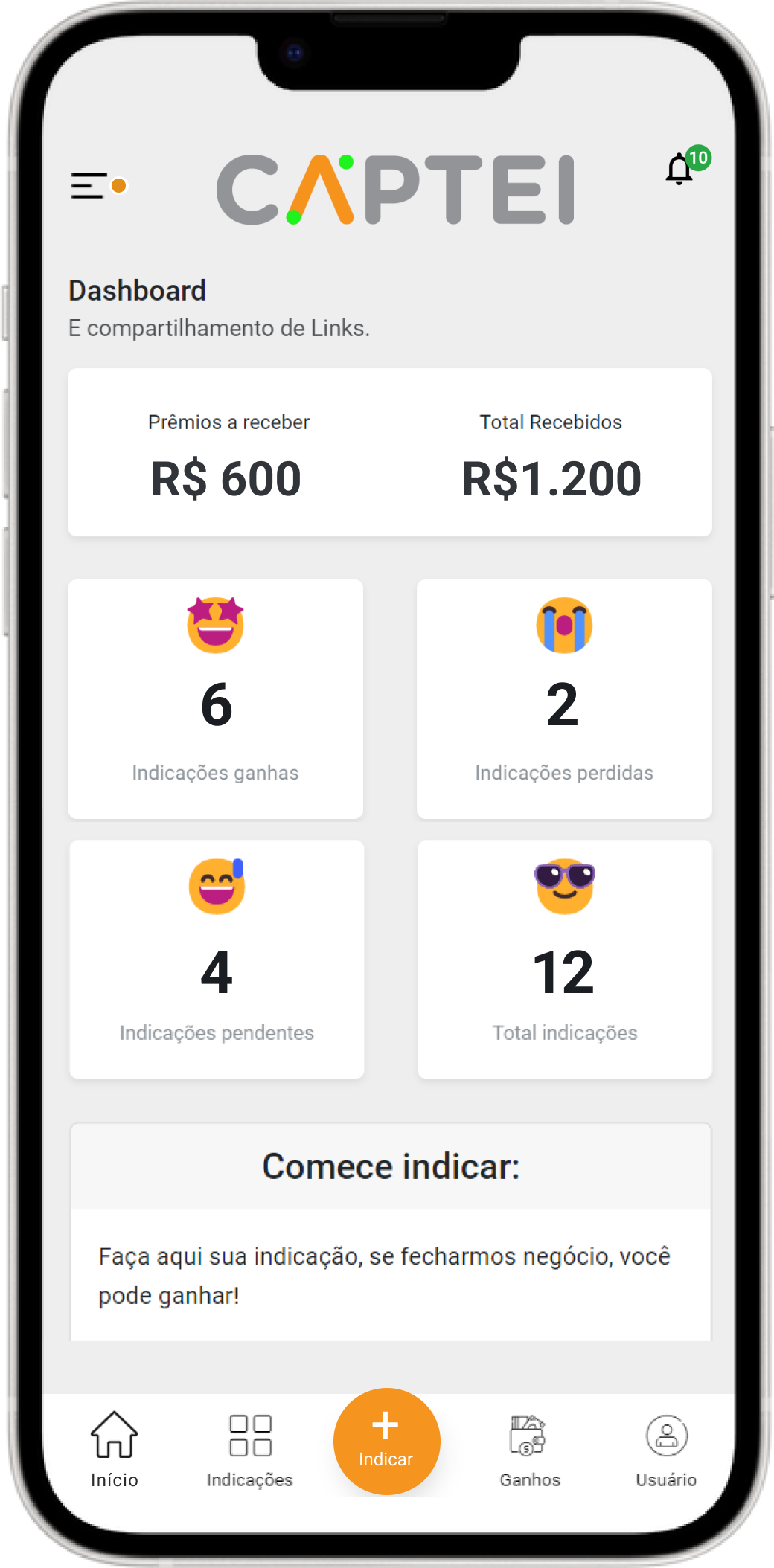 No APP através do nosso site você tem a opção de compartilhar um link via redes sociais e whatsapp. Assim que o proprietário cadastrar o imóvel utilizando seu link e for publicado, você pode ganhar!